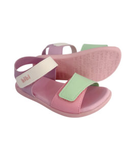 Sandalias infantiles BIBI rosadas combinadas en cuero con velcro