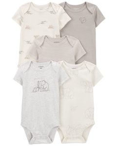 Body Carter’s de manga corta en algodón, en tonos de gris diseño elefante