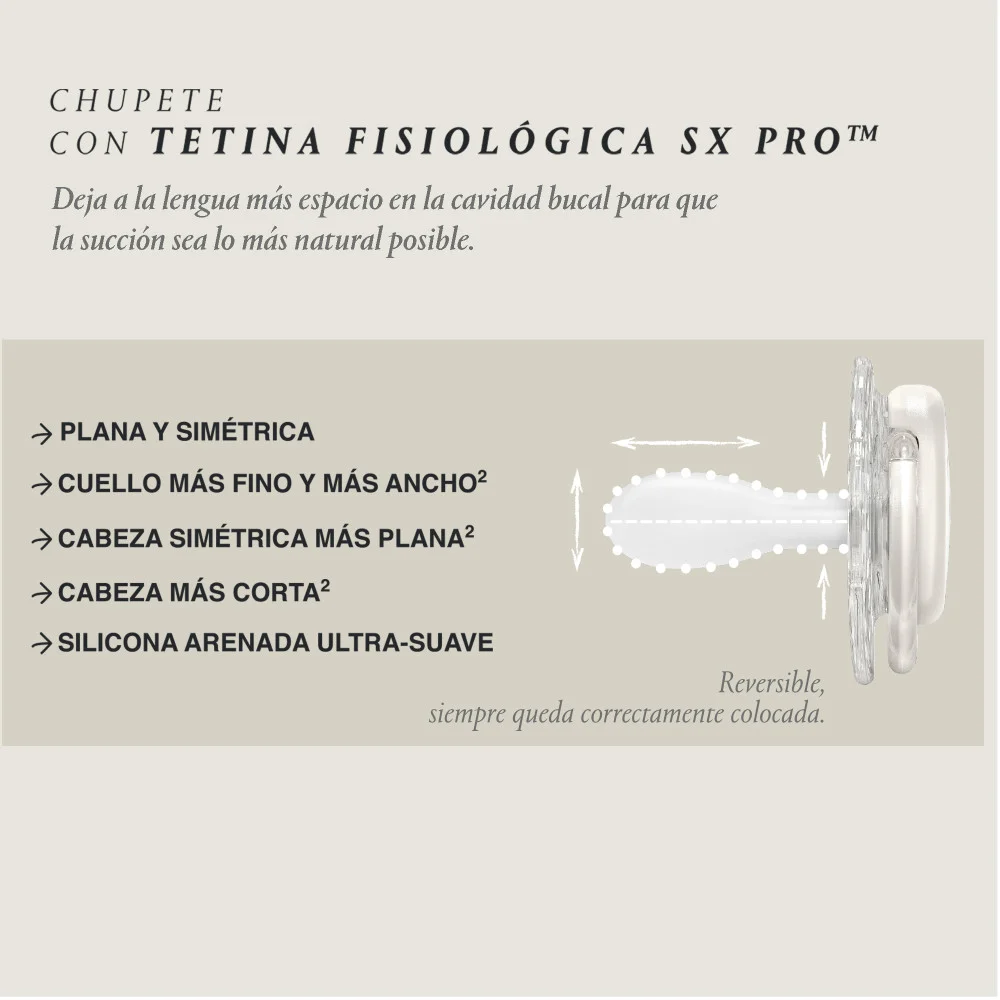 Chupete de silicona Suavinex SX Pro con tetina anatómica (+18m) diseño Bonhomia crema