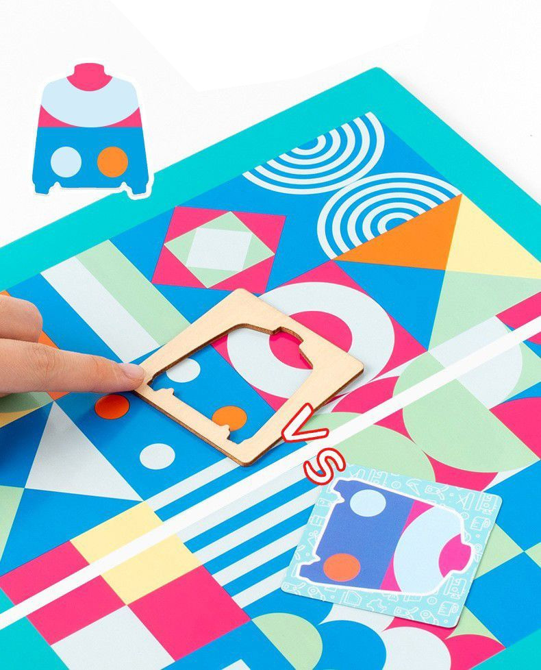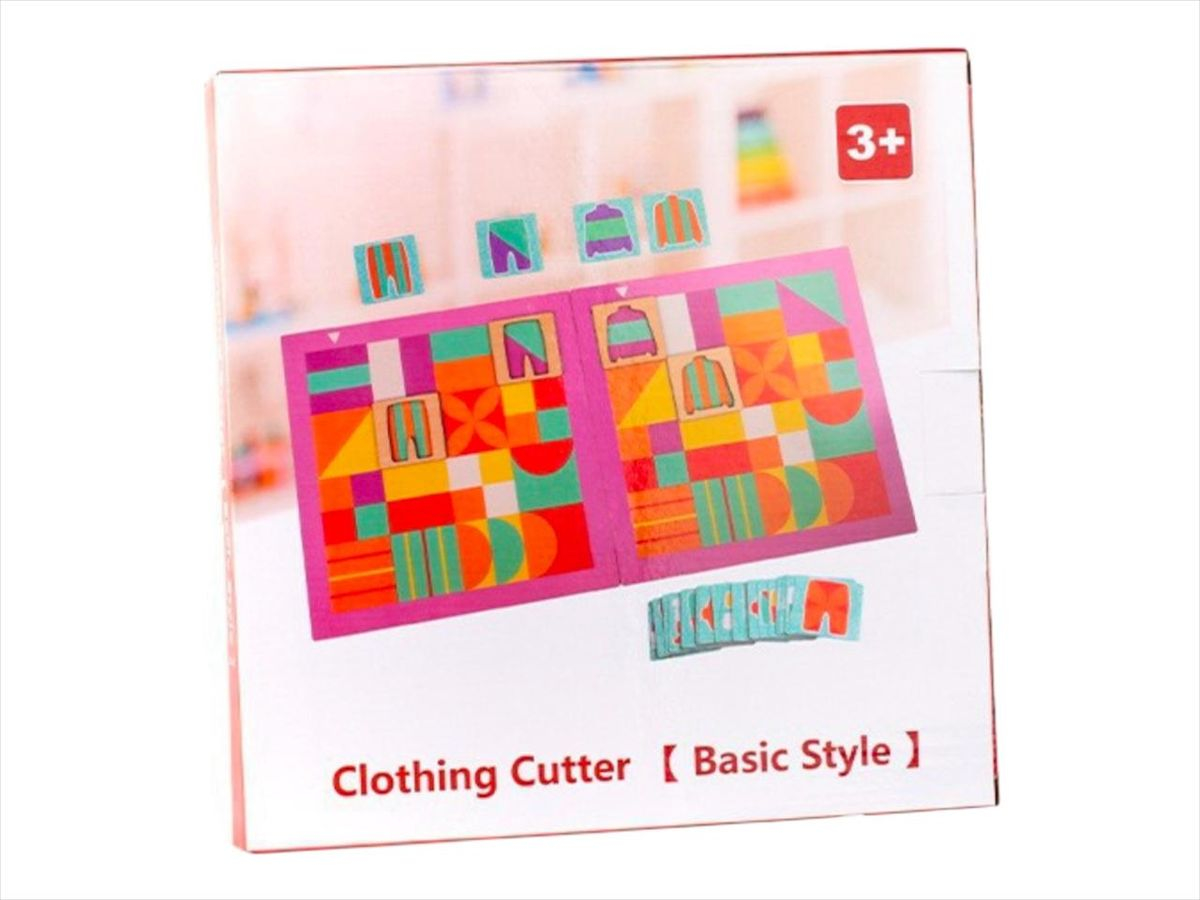 Clothing Cutter – Estilo básico, es un juego de observación y patrones en el que los niños buscan prendas dentro de coloridos tableros geométricos. Usando cortadores con forma de buzos y pantalones, deben encontrar en el tablero el diseño que coincide con la tarjeta elegida. Una propuesta divertida que estimula la atención, la percepción visual y el pensamiento lógico mientras exploran formas y colores.