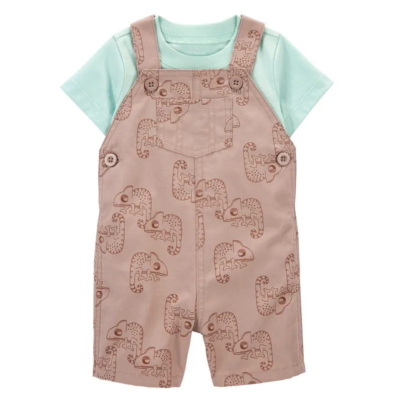 Conjunto 2 piezas Carter’s, remera celeste y enterito diseño camaleón