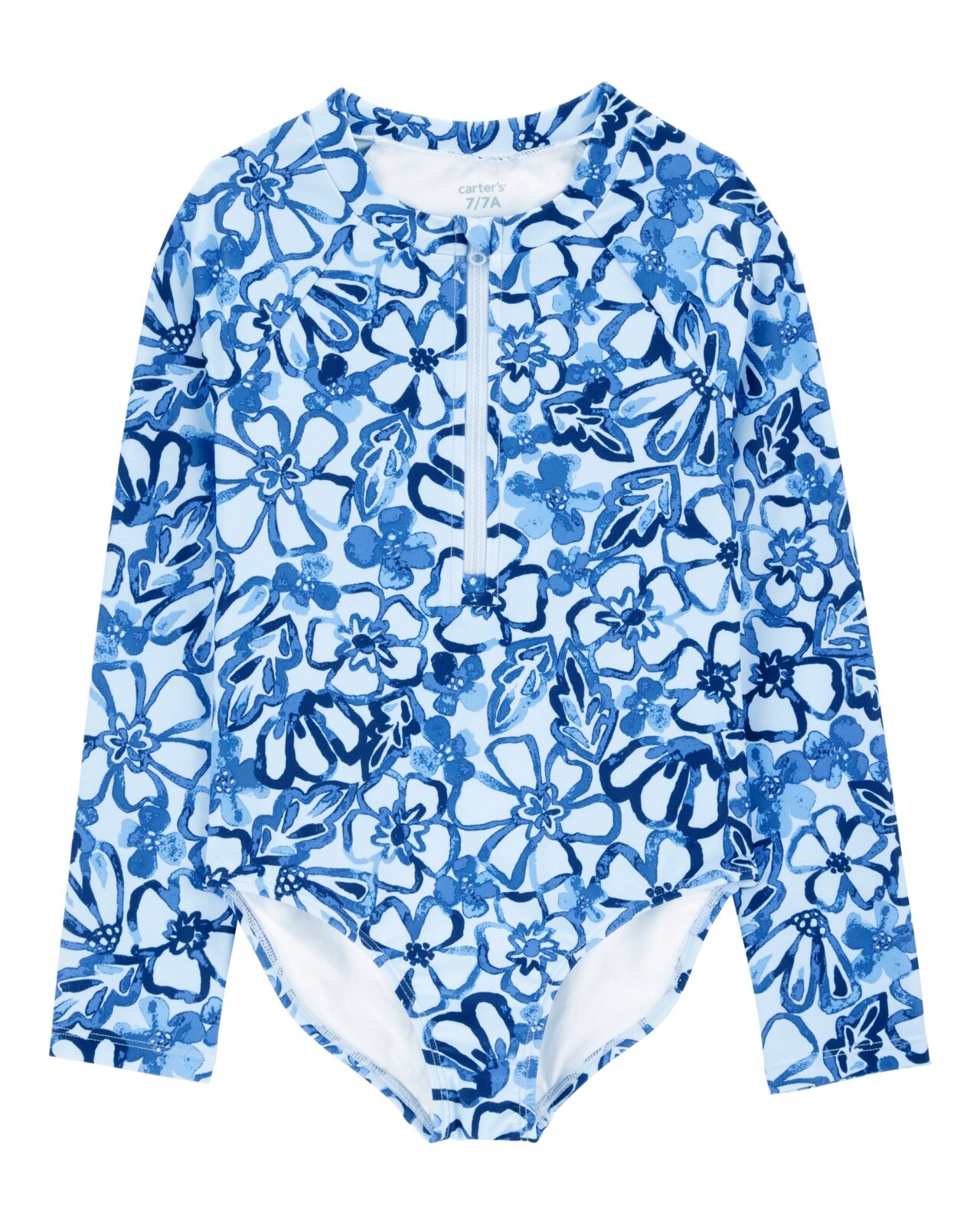 Malla de baño una pieza manga larga con protección UPF 50+, diseño floral