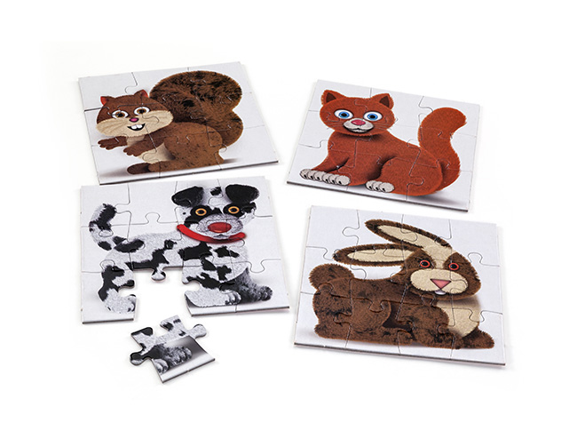 Cuatro divertidos puzzle de nueve y doce piezas Ideales para que los más chicos comiencen a reconocer formas y diferenciar figuras.