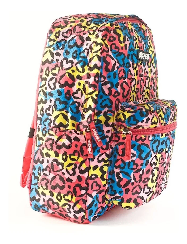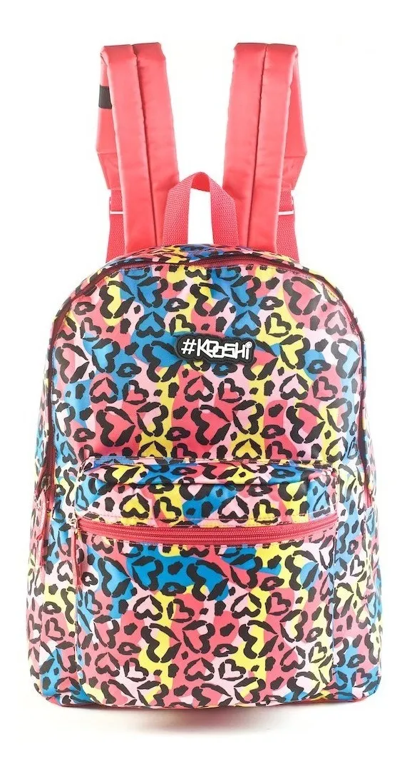 Mochila escolar con un alegre y súper colorido diseño de animal print. Fabricada en poliéster resistente, combina practicidad y durabilidad para el uso diario. Su compartimento principal ofrece buen espacio para libros y carpetas, mientras que el bolsillo frontal permite tener a mano los accesorios más pequeños. La espalda ergonómica aporta comodidad durante todo el día.