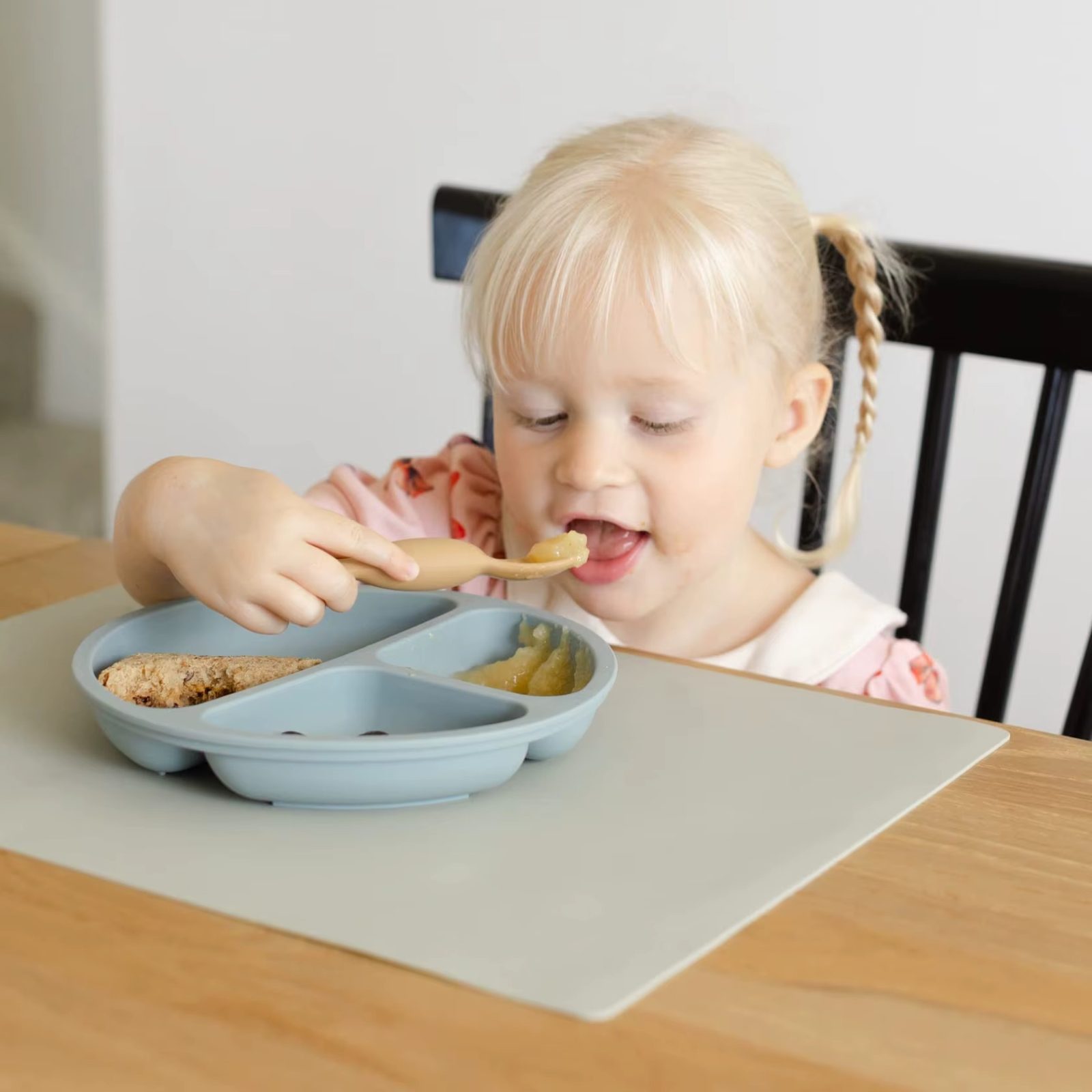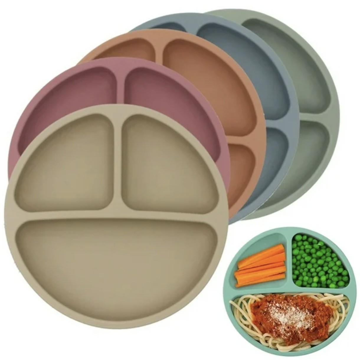 Plato de silicona redondo con divisiones y ventozas antideslizantes