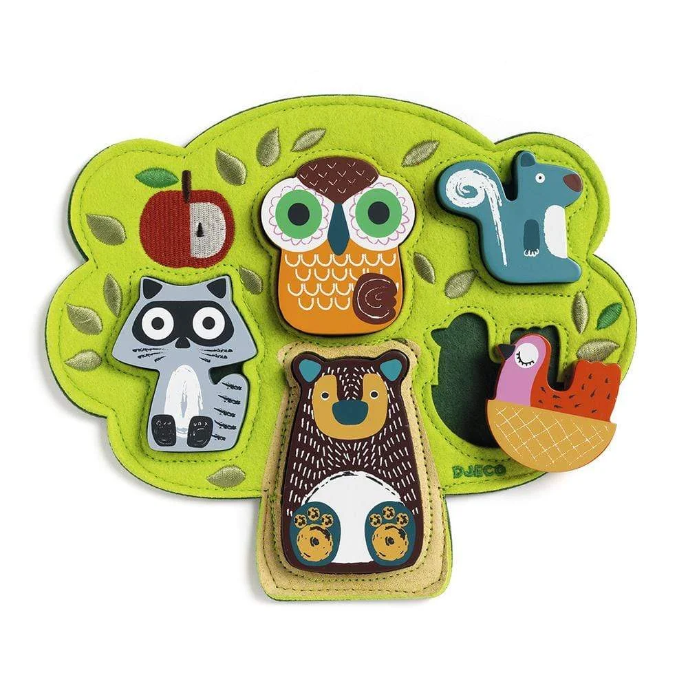 Un puzzle de 5 animales maravillosamente colorido de Djeco.