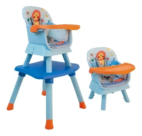 Sus partes se separan para convertirse en una silla baja y una mesita. Además, el asiento puede utilizarse como elevadora sobre una silla convencional.
