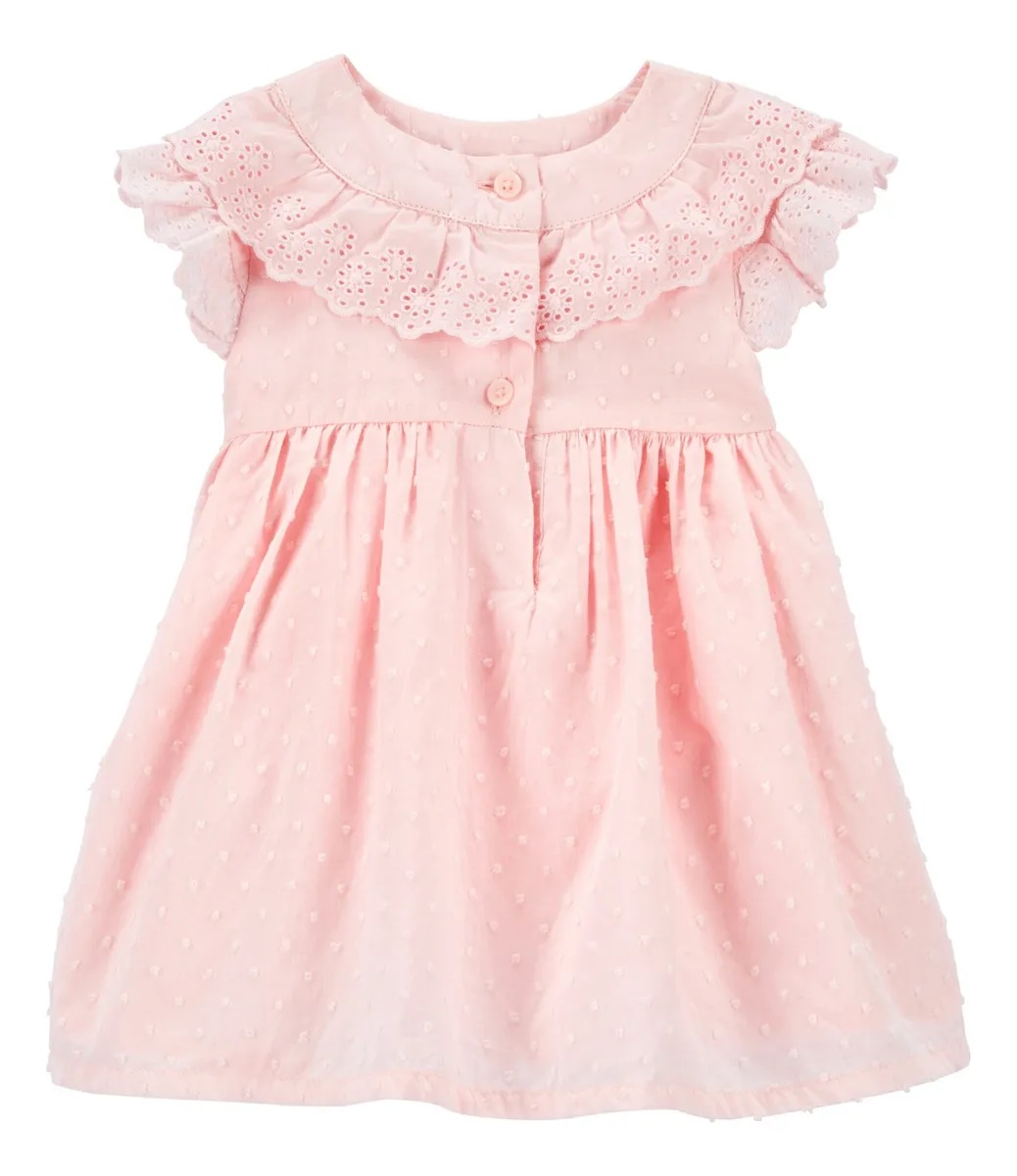 Vestido rosado Carter’s con bordado y puntillas